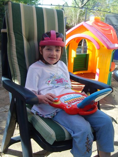 Kimy mit ihrem Ostergeschenk - ein Spiel-Laptop
